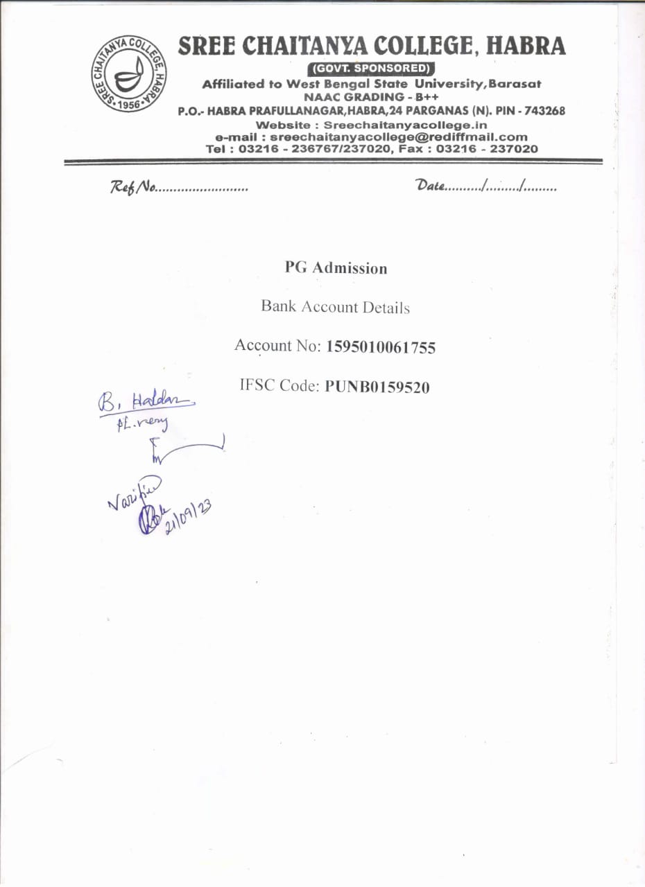 Students are willing to take admission for the PG can make payment to the mentioned A/C using Gpay / PhonePe / Netbanking or any online method, take a print of the payment then visit desired department of the college along with the application form and previous result with Xerox copy.