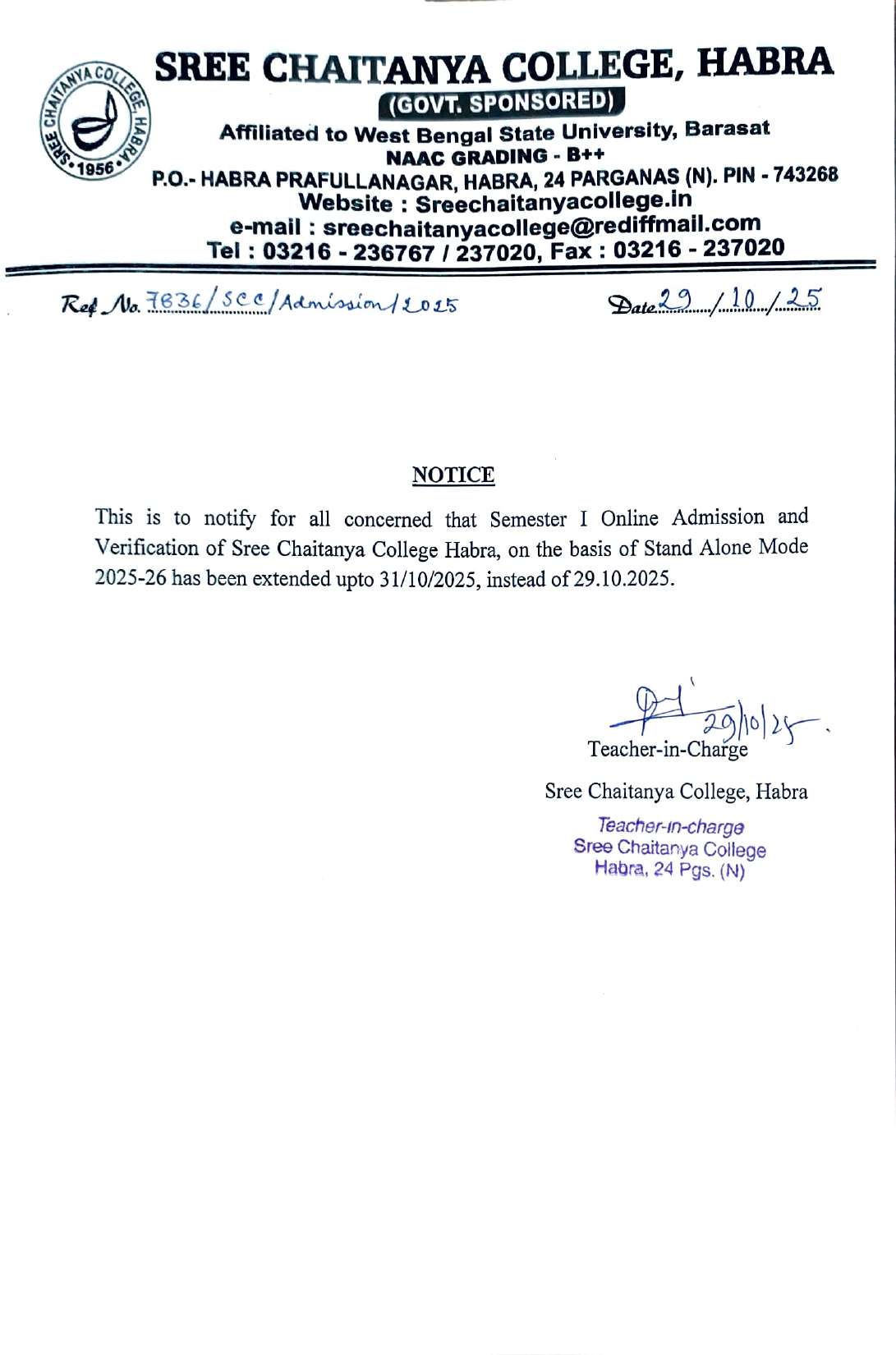 Semester I Online Admission & Verification Date Extended up to 31.10.2025